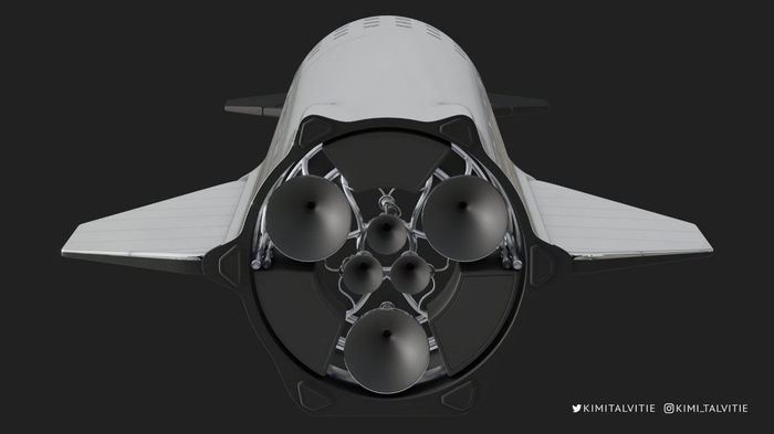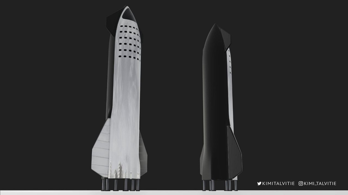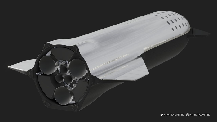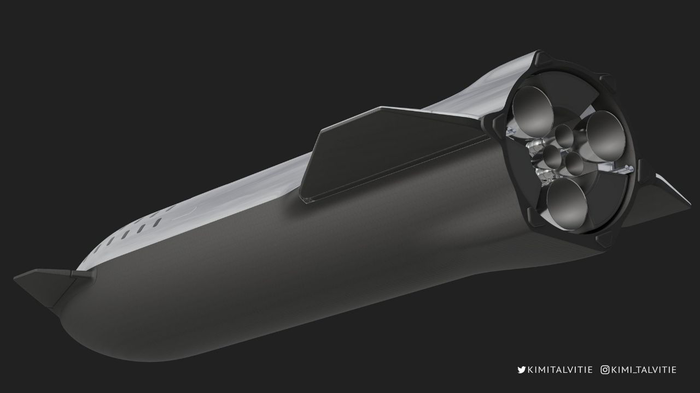 По сравнению с прошлыми версиями, Starship теперь имеет два крыла (а не 3). Прототипы Starship Mk1 (то, что уже построено) и Mk2 будут иметь по 3 двигателя. Mk3 и Mk4 (первые орбитальные версии) - 6, окончательная версия - 9.