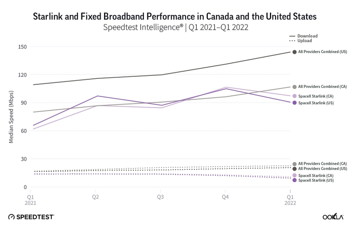 При переходе на сервис Starlink скорость загрузки увеличилась на 5900%, отдачи на 700%, задержка уменьшилась на 95%, а расходы снизились на 70% (до $50 000 в месяц). Благодаря максимальной скорости отдачи в 40 Мбит/с, каждая антенна Starlink обеспечивает передачу 100 Гб данных через несколько часов после приземления ступени. Это было невозможно при использовании геостационарных спутников связи. Starlink также сократил задержку с 1-2-х секунд до 50 мс.