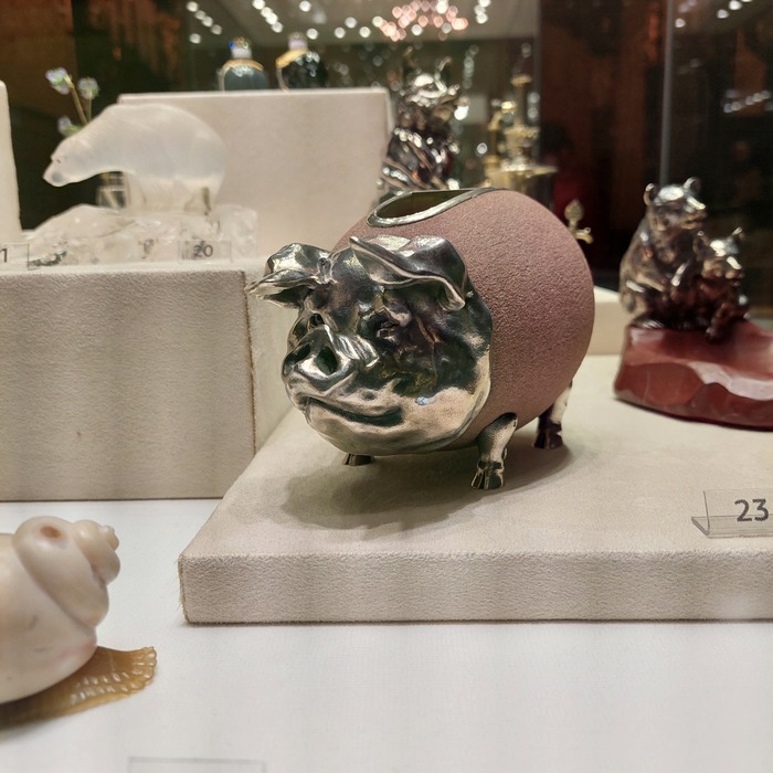 Честно говоря, ожидала большего. Много портсигаров и табакерок, а ювелирных изделий, пусть рядовых, но фирмы Фаберже, нет совсем. А, надо сказать, даже рядовые украшения у него прекрасны. Пусть и так, но смотря понимаешь, что 56 проба- это 56 проба, а старая огранка- это старая огранка.