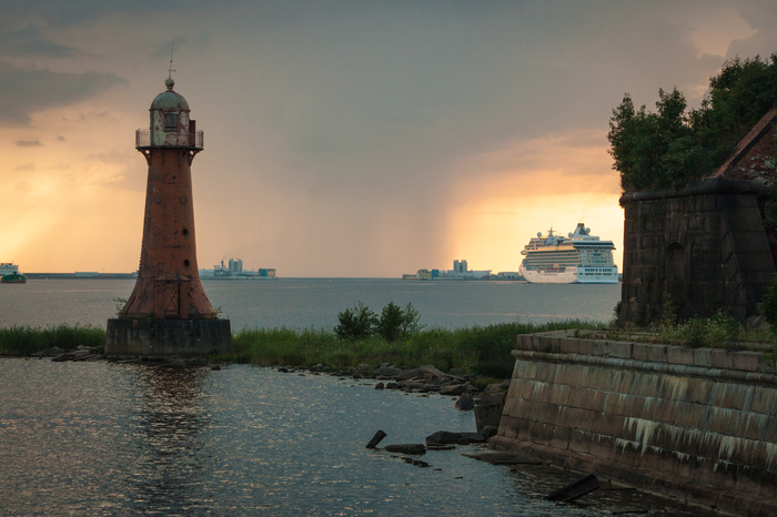 Между островом Котлин и фортом Кроншлот проходит морской канал, по которому в порт Санкт-Петербург заходят суда, в том числе и огромные круизные лайнеры.