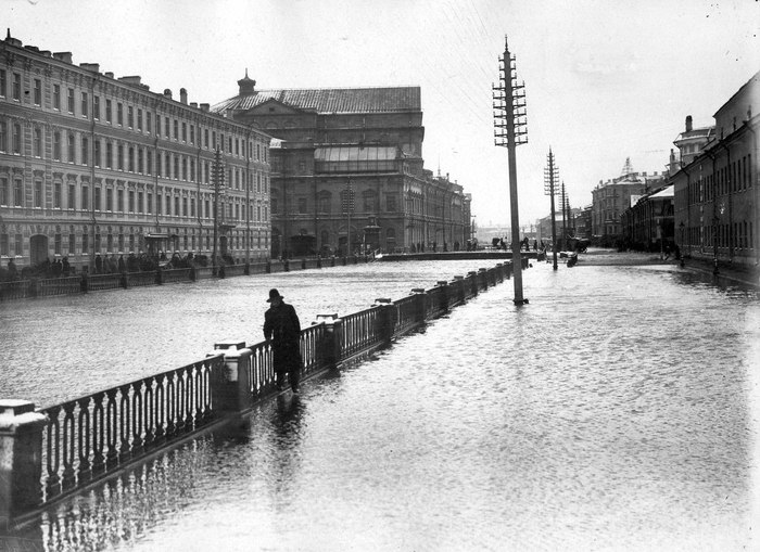 Друзья, в Петербург пришла пора осенних штормов - шквалистый ветер, дождь, громады стремительно несущихся низких сизых туч. До завершения строительства Комплекса Защитных Сооружений (КЗС, в народе именуемого "Дамба") реки и каналы города порой выглядели так: