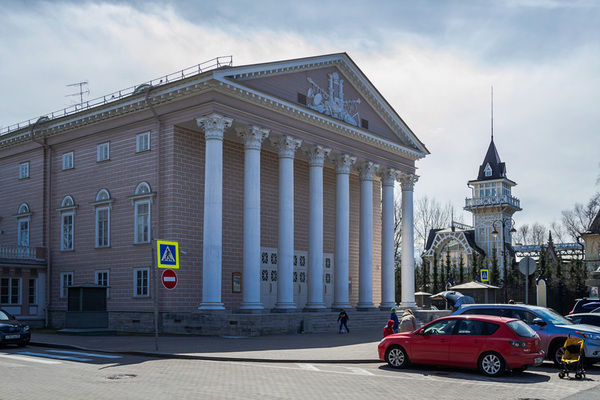 Эффектное здание бизнес-центра «Бенуа». Название «Бенуа» не случайно. В конце 19 века семья юного Александра Бенуа, ставшего впоследствии известным художником, отдыхала поблизости. Это место произвело яркое впечатление, что позже Бенуа опишет его в книге воспоминаний. Поэтому для оформления главного фасада архитектурное бюро NPS Tchoban Voss (Германия) выбрало эскизы с изображениями персонажей балета «Петрушка», созданные художником для дягилевских сезонов.