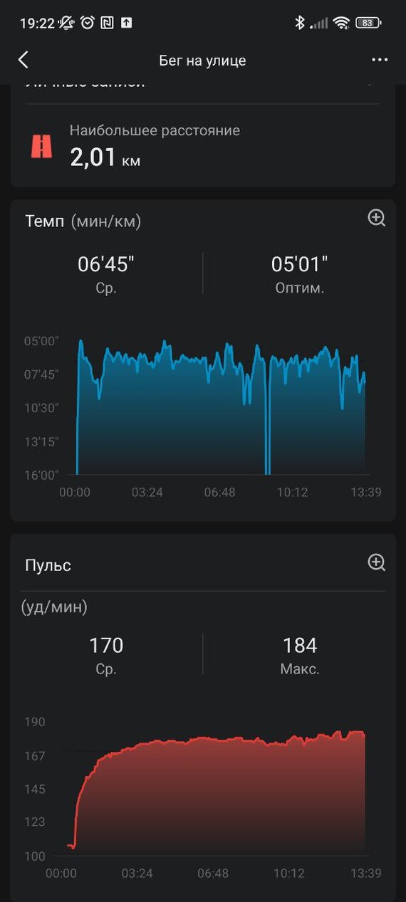 Самочувствие нормальное, смог осилить в таком темпе 2 километра.
