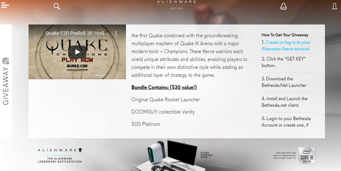 Для получения нужно перейти по ссылке на раздачу, залогиниться или создать аккаунт Alienware и нажать кнопку "GET KEY".