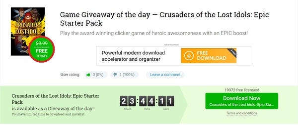 Раздача- https://game.giveawayoftheday.*com/crusaders-of-the-lost-idols-epic-starter-pack/ (убираем *)