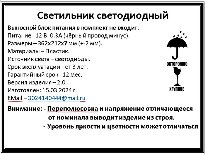 Температурный режим от -40 (когда энергосберегающие лампочки приказали долго жить, эти панели устойчиво продолжали давать освещение на веранде) до +120 - шутка (свояк в парилку умудрился на потолок в бане повесить. Светила до последнего, даже при 120 градусах расплавившись и стекая пластиком на пол, панель упорно продолжала светить. Пруфов не будет, фотки потерялись)