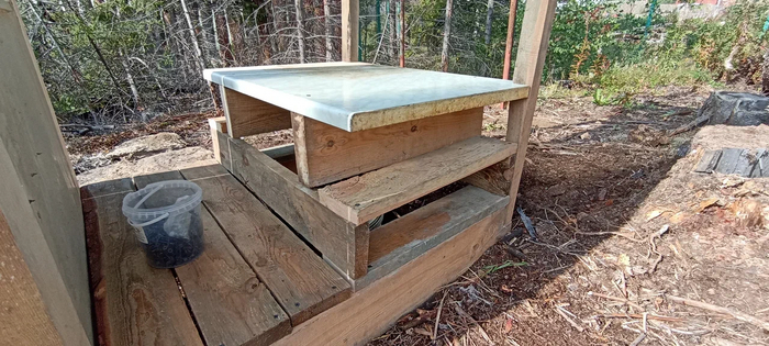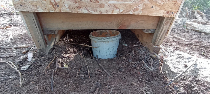 Сзади выкопал ямку, туда поставил ведро.