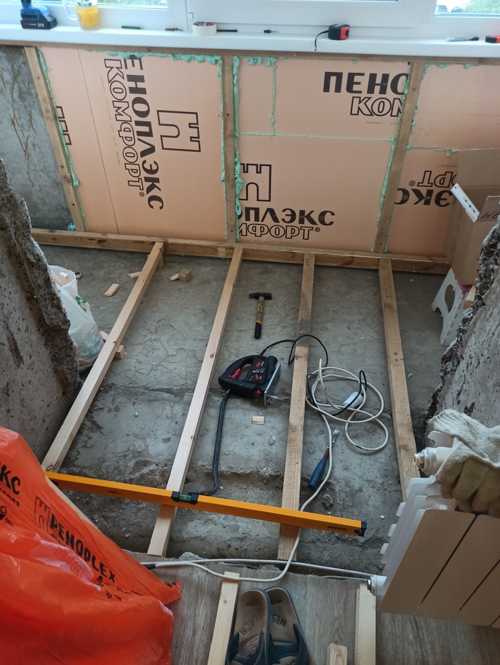 В принципе все готово для монтирования планкена. Планкен был заранее куплен и на этапе утепления по вечерам супруга красила его заранее. Так как на покрасу нужно было почти 3 суток (1 слой праймер + 2 слоя пропитка), а красили по 10 палок 6м.