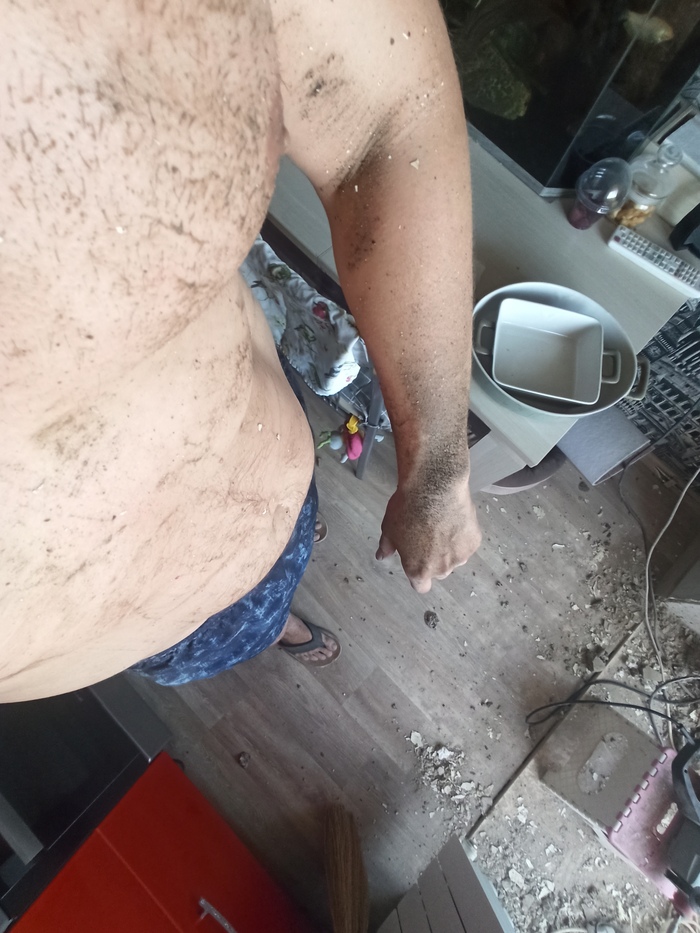 Для уменьшения пыли был куплен пылесос, кстати очень вовремя и мне понравилось с ним работать, тем более за 5к.