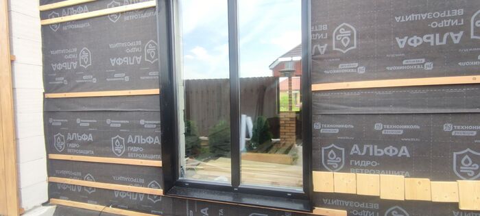 Обрамление окон выполнил из того же планкена покрашенного в черный цвет м герметизацией стыков к раме.