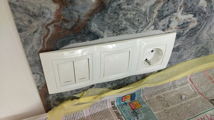 После монтажа электрики как везде в квартире - стало ясно, что цвет надо менять. Белый не в кассу