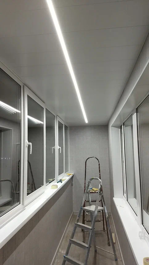 Свет - т.к. уровень потолка после выравнивания снизился - светильники блокировали окна. Была выбрана светодиодная лента на всю длину - получилось хорошо