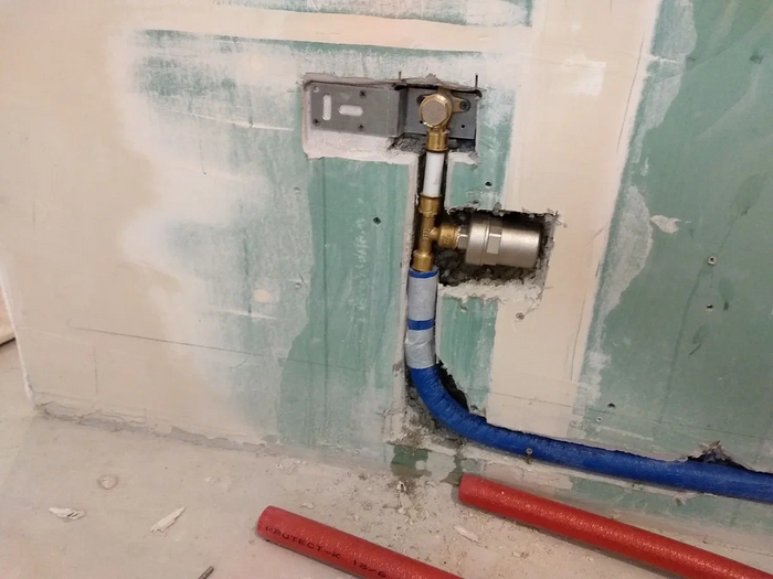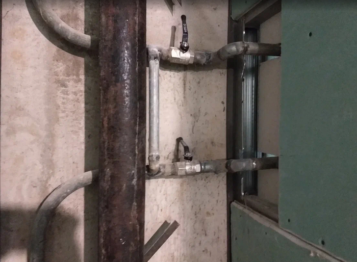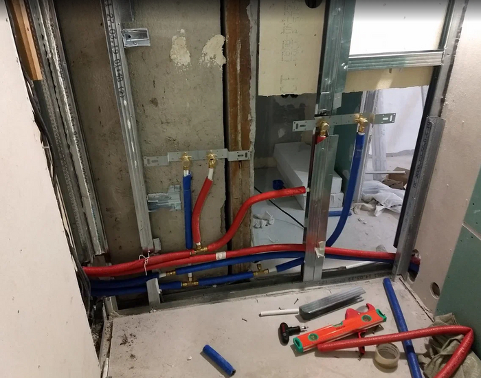 После постройки новой кабины из гипсокартона+гвл (как и по всей квартире) нужно было прокладывать всякие трубы....это было тяжко физически - гнуть и пихать в профиль