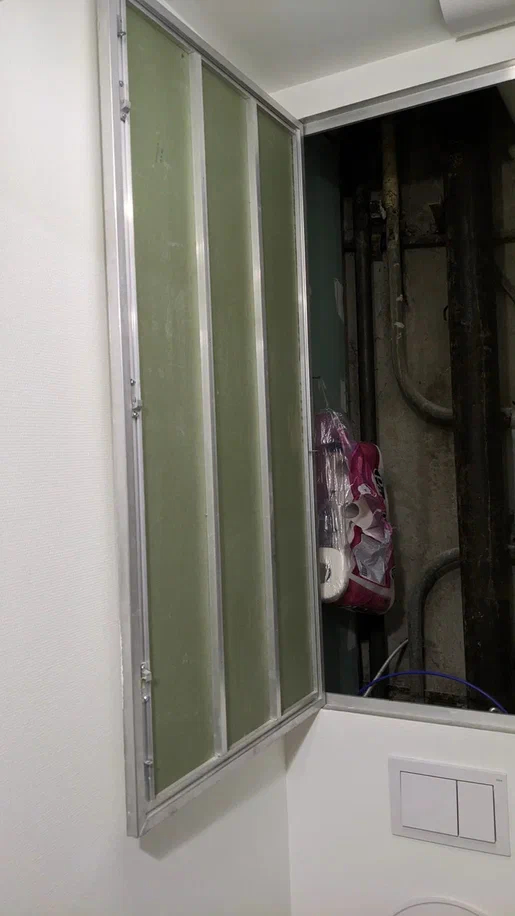 Самый главный гемморой санячейки (после полотенчика) - это мать его люк в туалете от славной компании лючки.рф. В первоначальной версии не было ребер жесткости и влагостойкий! гипсокартон на нем выгибал конструкцию после грунтования . Деньги эти утырки не вернули, но уже не было сил - ремонт задолбал - заказал новый уже с ребрами