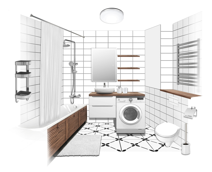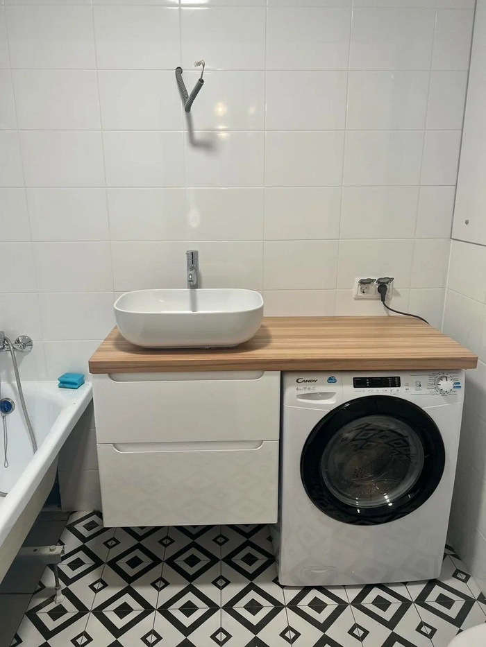 У раковины - шестиугольники (испания), а у ванны - под дерево (наша)