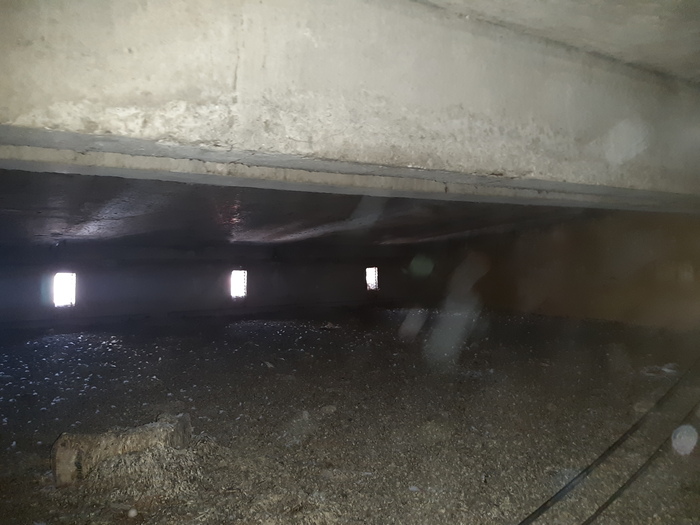 Вид из туалета - сделали подвод к полотенчику с байпасом ( но не смогли сделать трубы в уровень - криворукие сварщики - потом исправил шайбами)