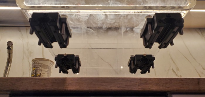 Установил каретки, нужна была максимальная точность, так как зазоры по краям малы, на нержавеющие винты.
