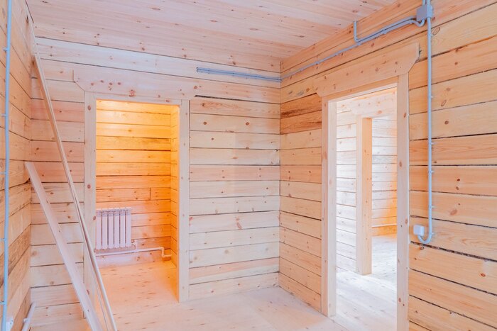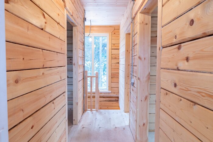 Пахнет до безумия приятно, этот запах будет здесь вечно, из за количества дерева внутри и снаружи дома.