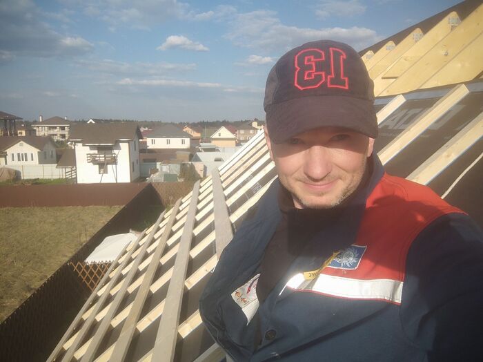 К высоте привык, не страшно. По обрешетки приятно лазить. Страховка есть и есть пояс специальный альпинистский.