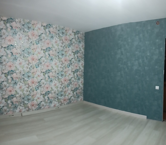 Помогли дети на заливке пола под ламинат и с поклейкой обоев.
