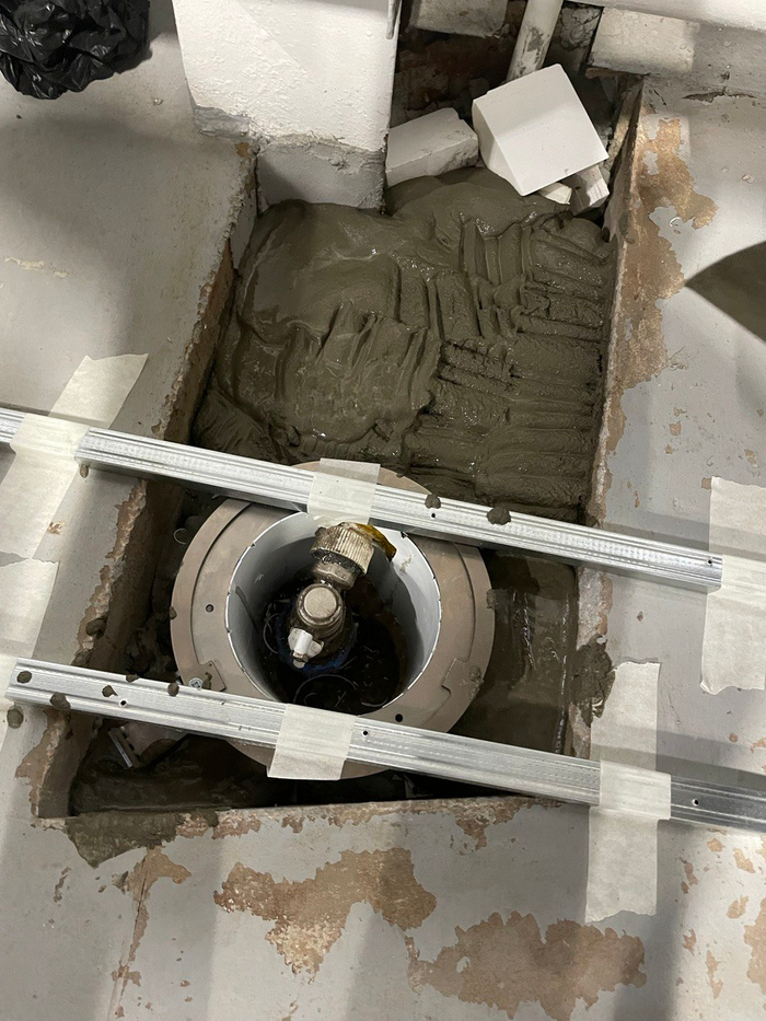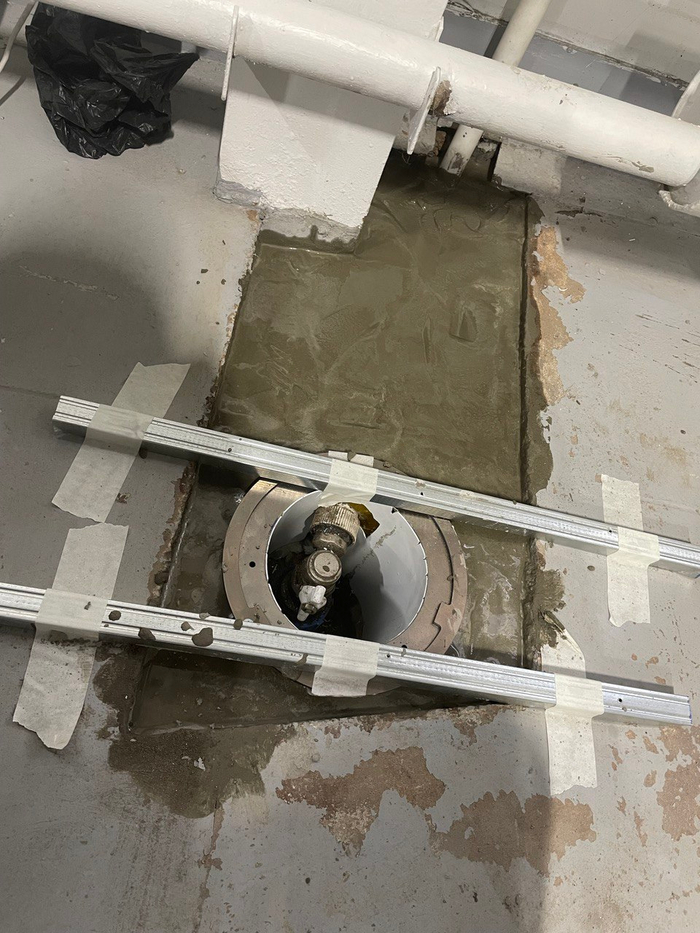 После недолгого консилиума и наблюдений за ямой. Пришло осознание что просто с наскока справиться будет сложно. Но так как мы инженеры, я бы сказал инженегры. Пугаться каких-то там ям нам не приходится. Был составлен план в котором мы ответили на главные вопросы. ЗАЧЕМ?(наш локальный мем). И как будем бороться с напастью? Посидев покумекав ваш покорный слуга используя, смекалку, вентиляционную трубу D150 и пару мотков скотча. Рискуя своими конечностями полез в яму устанавливать импровизированную опалубку ,чтоб оставить возможность пользоваться краном (который выключает воду во всем здании хи-хи-хи).