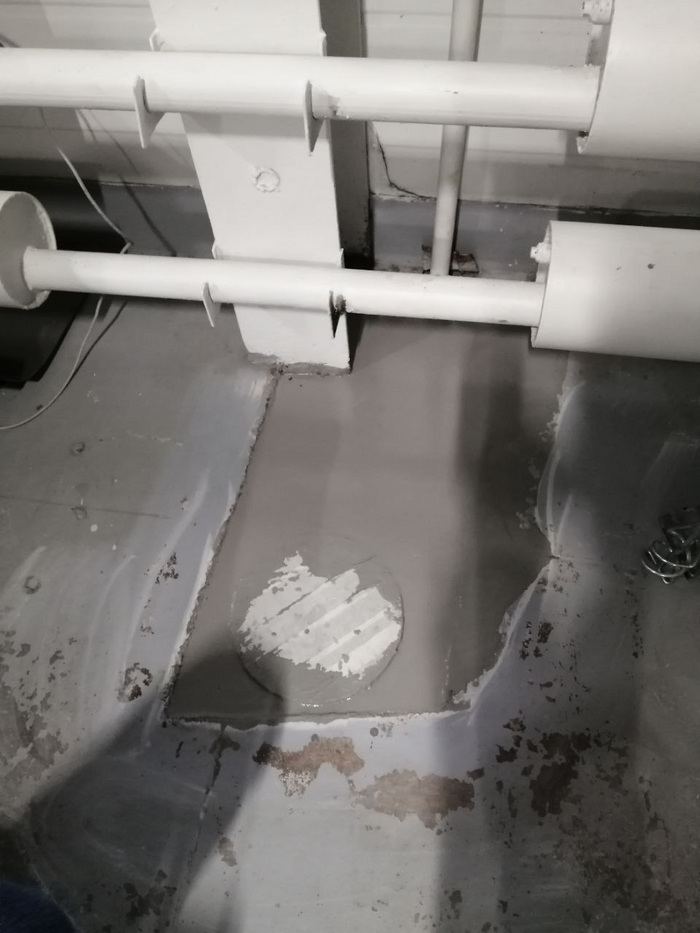 Чтоб не бросать на пол пути было принято еще одно стратегическое решение. Купить еще раствора. А чего вы еще ожидали?) На этот раз мы решили разнообразить время препровождения и заказали Меркурию раствор для наливных полов. Самый дешевый.