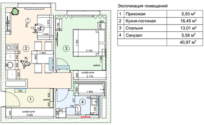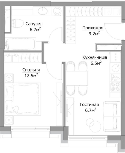 Имеем: однокомнатная квартира 41 кв. м с предчистовой отделкой.