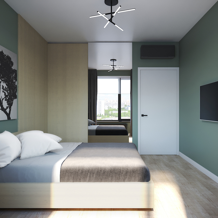 Спальню согласовали в зеленом цвете - L440 и S440 (по раскладке Tikkurila Symphony).