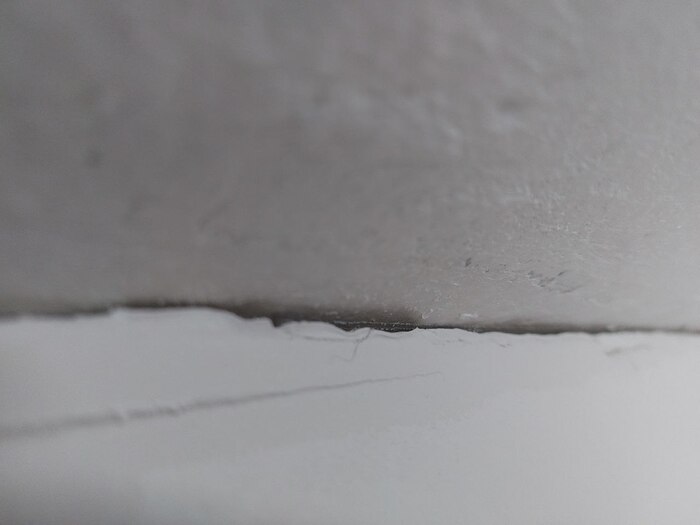 В спальне есть стена обшитая гипсокартоном. Я так понимаю для утепления. Так вот, между стеной и потолком есть щель, разной степени ширины.