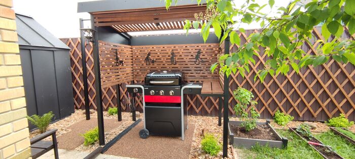Я делал еще кое-какие строения, а именно смастерил навес для мангала.