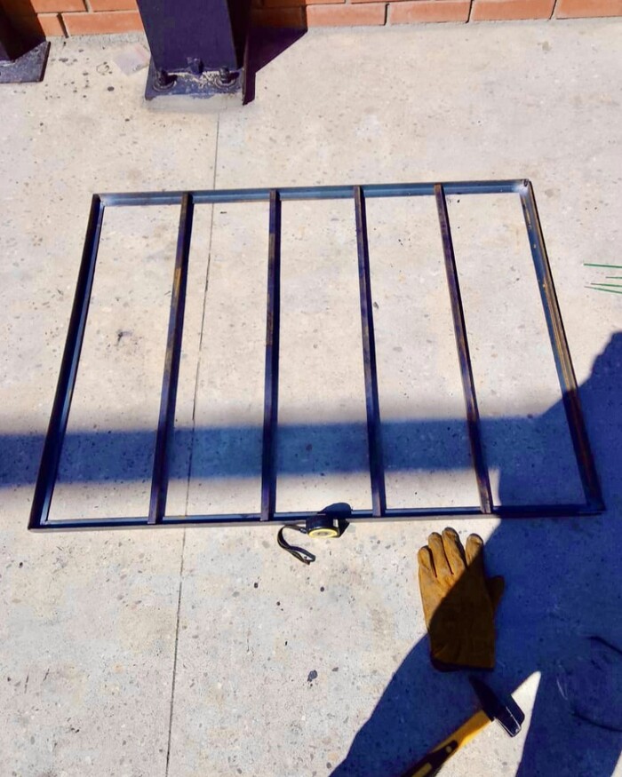 Обварили рамку из 32 уголка, заполнили вертикальными трубами 20х20х3мм