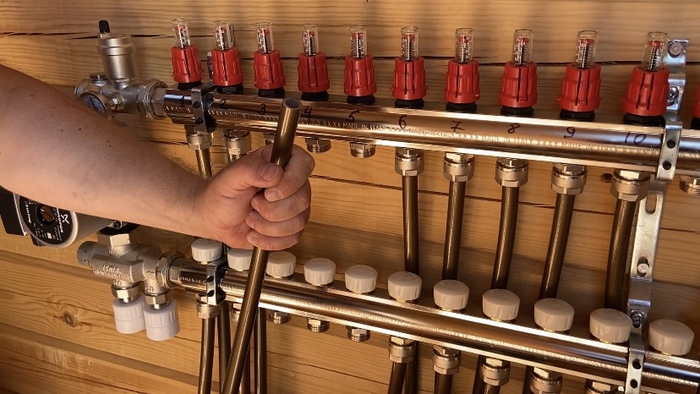В среднем, на 10 м² площади идет один контур на коллекторе, поэтому высчитать количество контуров тёплого пола довольно легко. Просто делите квадратуру дома на 10 и получаете количество контуров теплого пола.