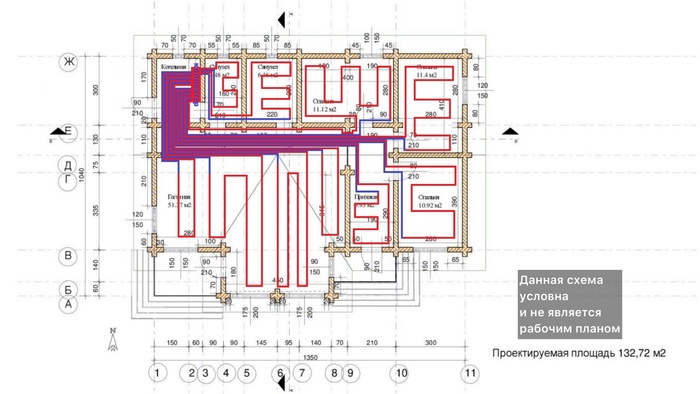 Первое, что необходимо для монтажа теплого пола в деревянном доме - тщательно продумать прокладку трасс, т.е. как пройдут трубы теплого пола от коллектора по дому.