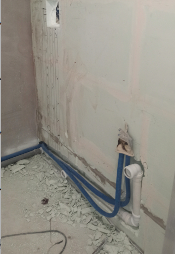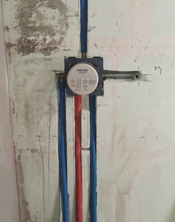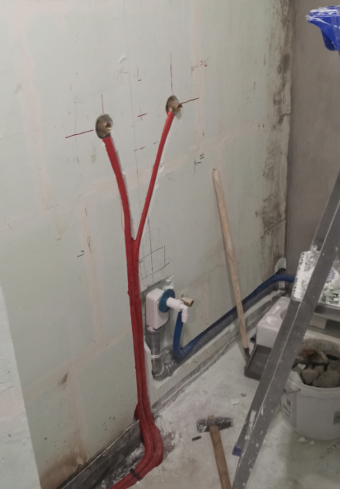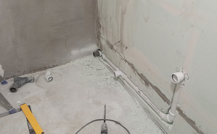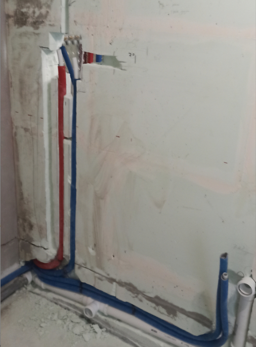 Тут уже протянул трубы для стиралки и раковины в ванной