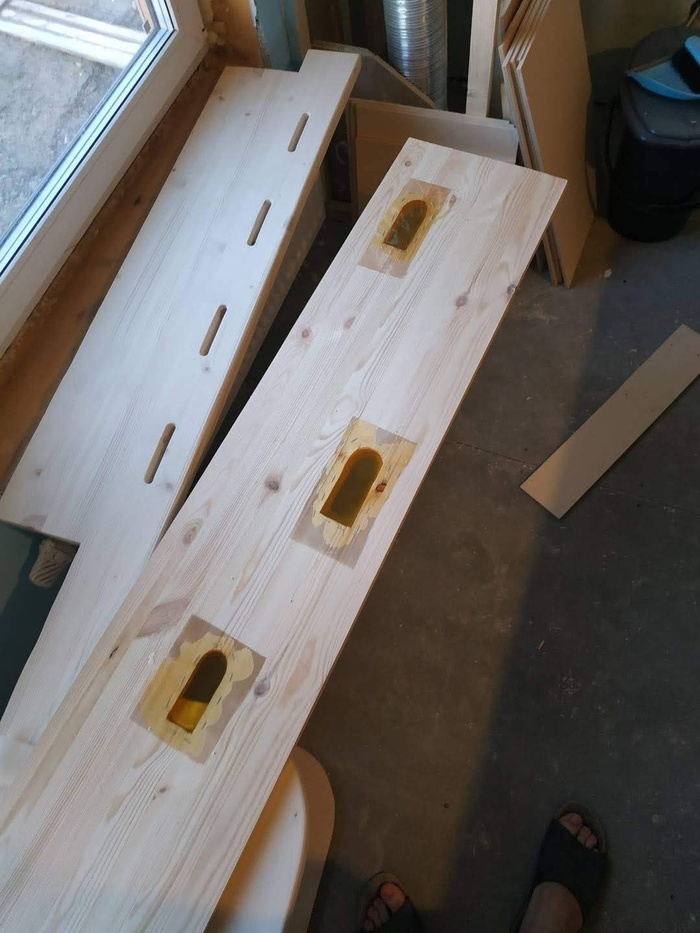 ОО - наглядный пример, как не нужно делать. Ведь специально купил тумбу с раковиной, примерил, начертил. Блядь, меня где то переклинило трубы я вывел там где не нужно. Благо вышел из ситуации и немого переделал крепление перекладины у тумбочки.