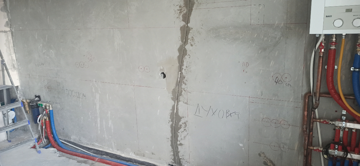 Прогресс идет но далеко еще не все. Было бы конечно гораздо быстрее будь это не мои стены. Когда они свои жалко снимать лишние сантиметры, долбишь по чуть чуть, примеряешь по нескольку раз. Процесс долбежки идет очень долго.