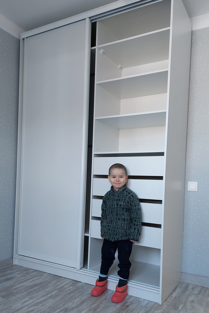 В таком вот ограниченном состоянии будем работу работать. Сыну и жене слабину показывать нельзя, так что газ в палас и вперед. Доделав ламинат, приступаю к постройке мебели. Шкафы, кровати, матрасы, полки делаю сам. После самостоятельной постройки дома такую мелочь заказывать кому-то было бы стыдно перед собой.