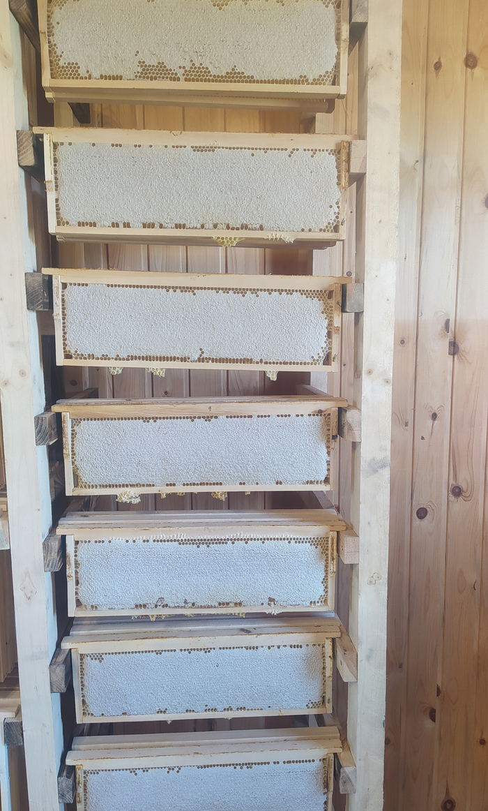 Пока биология не устоялась в воде, карпов кои еще не запускаю, так что можно и отдохнуть от строительства. Собрать чая, ягод и трав на год вперед. Обработать урожай со своих полосатых тружениц. Сделать им новых рамок для дальнейшей работы. Наших даров уже настолько много, что раздаем всем своим родным и друзьям. А уж излишки продаем, благо всю нашу деятельность жена показывала в своем блоге, откуда и отрывали с руками все наши вкусняшки.