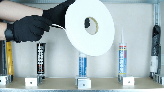 Тесты буду проводиться следующим образом. Берем трубы прямоугольного сечения и склеиваем их. Площадь соединения у всех одинаковая. Как мы этого добились? А очень просто. Берем скотч 3М VHB 4959F толщиной 3мм. Минимальная толщина соединения клеем-герметиком, по заявлению производителей, от 2 мм и больше. Так что 3 мм толщина оптимальная. Кстати, те кому интересно, 4959F выглядит вот так: