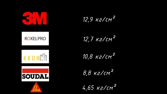 Ну и короче, выждал я еще 3 дня, в надежде что 3М и РоксельПро полимеризуются, а КронБилд вспомнит что он клей-герметик. Как вы понимаете, это не помогло. Давайте кратко взглянем на результаты тестов при комнатной температуре. В лидерах опять 3М и РоксельПро (только они поменялись местами).