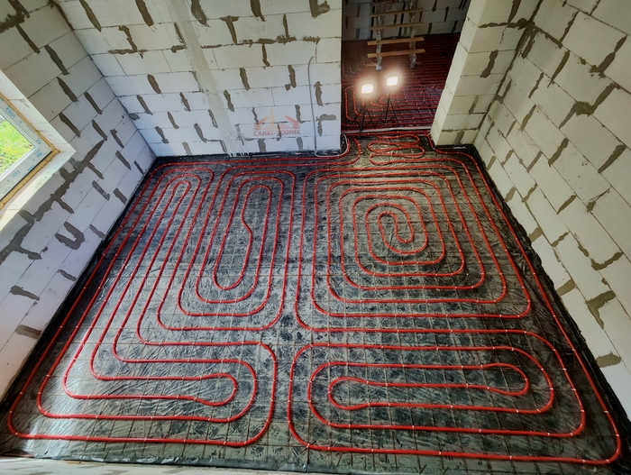 Выполнена разводка систем отопления и водоснабжения с канализацией в доме площадью 170кв.м.