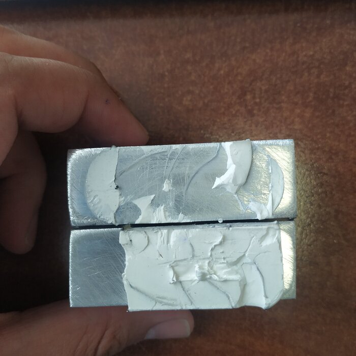 Видите, видите? У 3М адгезионный разрыв, т.е. герметик оторвался от алюминия, а вот РоксельПро порвался по герметику, т.е. когезионно. Это круче. Это значит, что клеевое соединение прочнее основы адгезива. Это щож получается, РоксельПро лучше 3М?