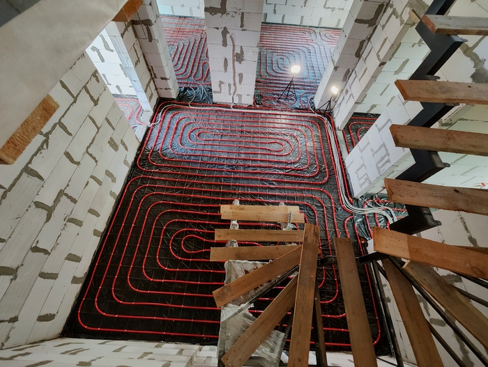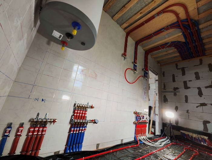 Практически весь инженерный материал на этот объект был закуплен ещё в прошлом ноябре и ожидал своего монтажника-повелителя для исполнения. Таковым оказался Денис, который и заставил его из груды труб, коллекторов и соединителей преобразоваться в качественные системы отопления и водоснабжения с водоотведением.