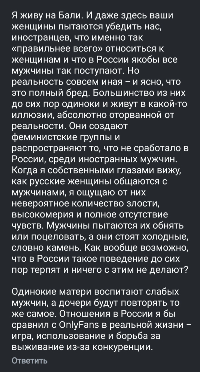 только вот такая хуйня существует только в бабских каментах, а не в реальности.