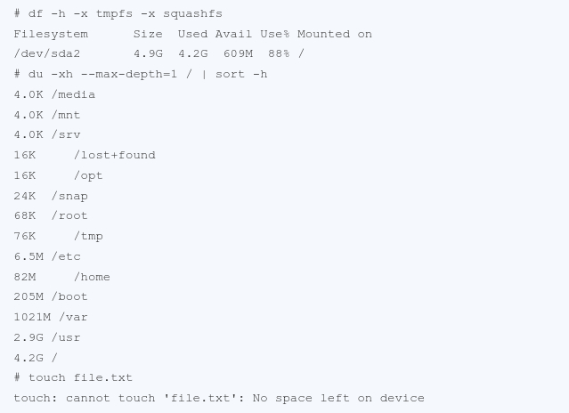 Ну, у нас определённо есть свободное пространство, но что-то всё равно пошло не так. Давайте попробуем посмотреть ещё кое-что: