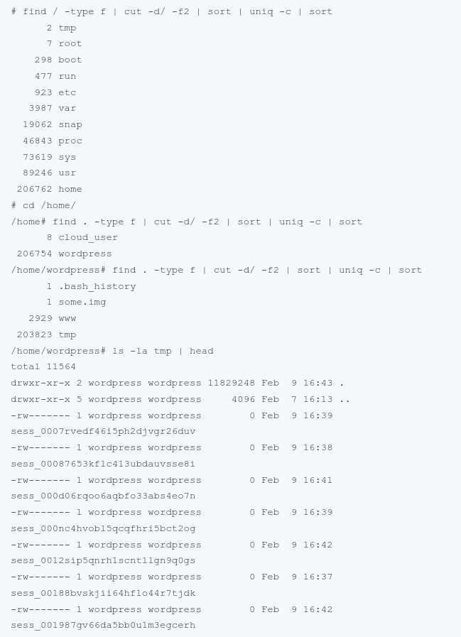 Попробуем найти директорию, с наибольшим количеством использованых inode: