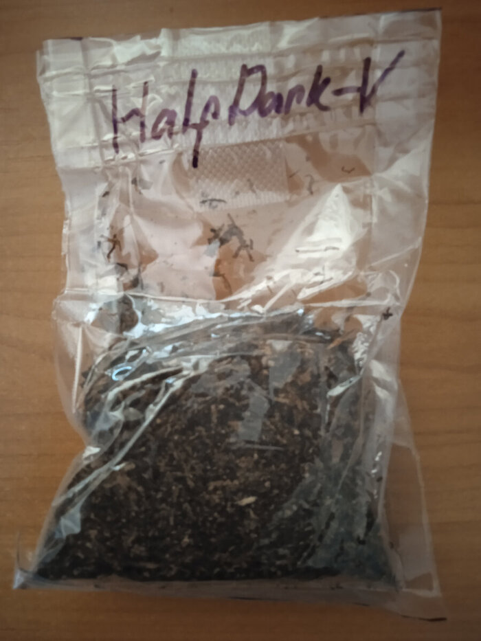 Ну а теперь о самой мешке Half Dark-V. Запах из пакета сложный: хороший Кавендиш с разнообразными нотами от чернослива до рома и бренди. Что-то и от Кентукки есть. Ну в общем вкусно! Подготовил как и предыдущую мешку и также смешал с АБ. Курю! По большому эта мешка похожа на предыдущую, но есть нюансы во вкусе. Вирджиния Дарк внесла в мешку дополнительные ароматы! Точно идентифицировать я их не смог, да и не надо. Просто вкусный табак!