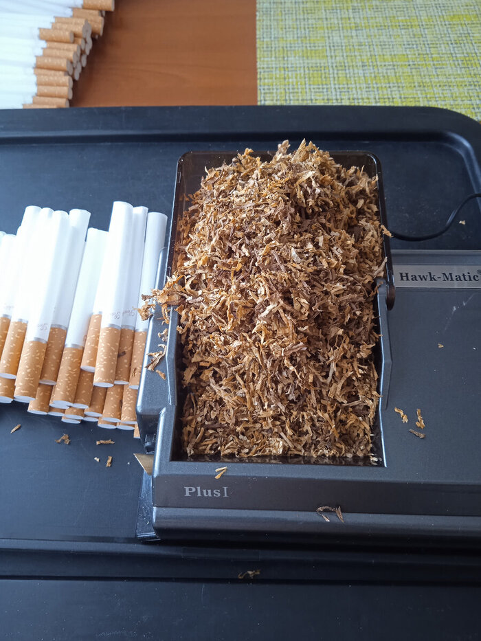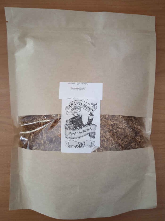 О нарезке говорить не имеет смысла! У Табаков Мира она всегда отличная, не кисетная, но забивается и крутится отлично. Есть немного палочек, листиков и пыли, но очень мало. Да и натуральный табак невозможно представить без этого незначительного количества мусора. Только в восстановленом табаке отсутствуют листики и палочки.