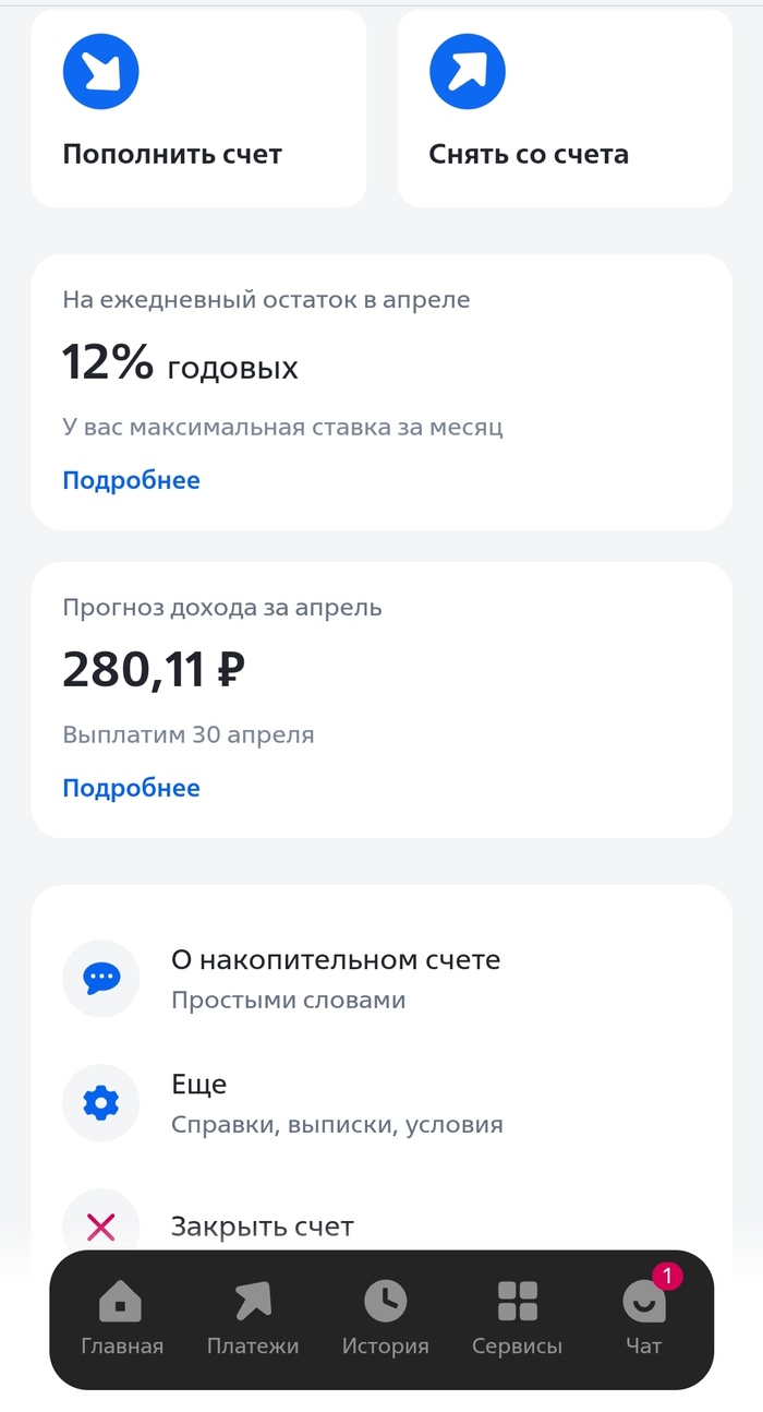 С основного счёта, куда поступили, перевожу часть на накопительный, с которого в любой момент МОИ денюшки могут быть использован на экстренные случаи (пока не было ни разу).