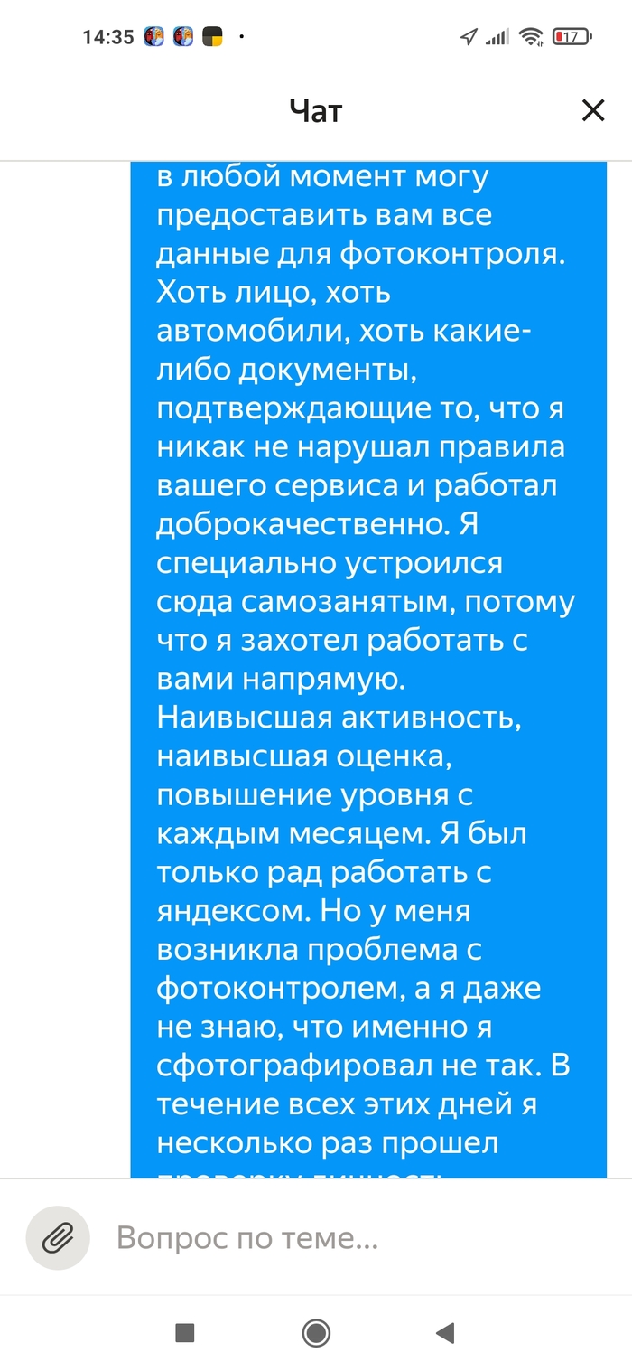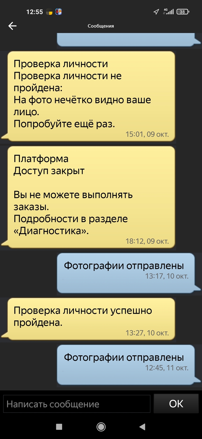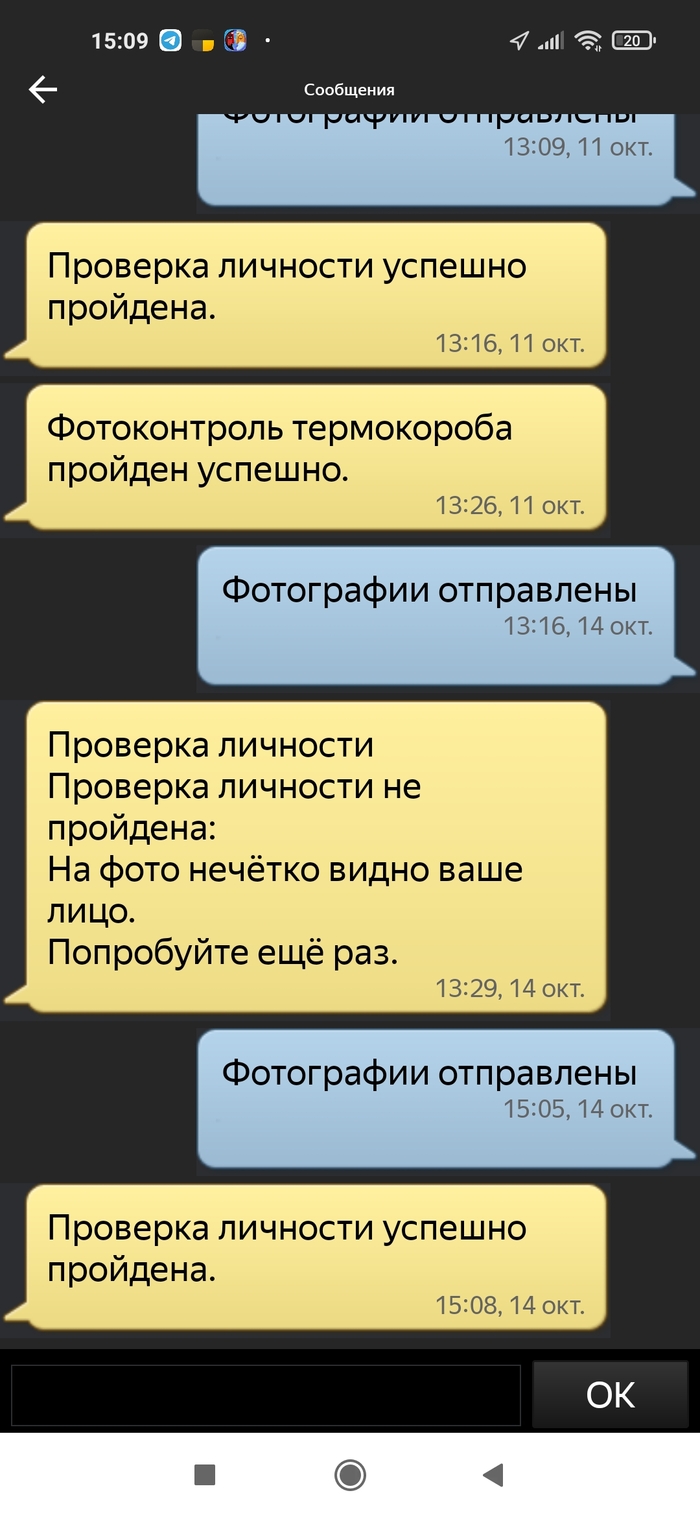 Кратко расскажу о том, что произошло. Полтора месяца назад я начал работать в Яндекс.Доставке на своëм авто как самозанятый. Всё было прекрасно, меня, как студента, всё устраивало. 26 сентября мне на машину упало дерево и я начал работать на машине отца. Фотоконтроль прошел, всё было отлично.